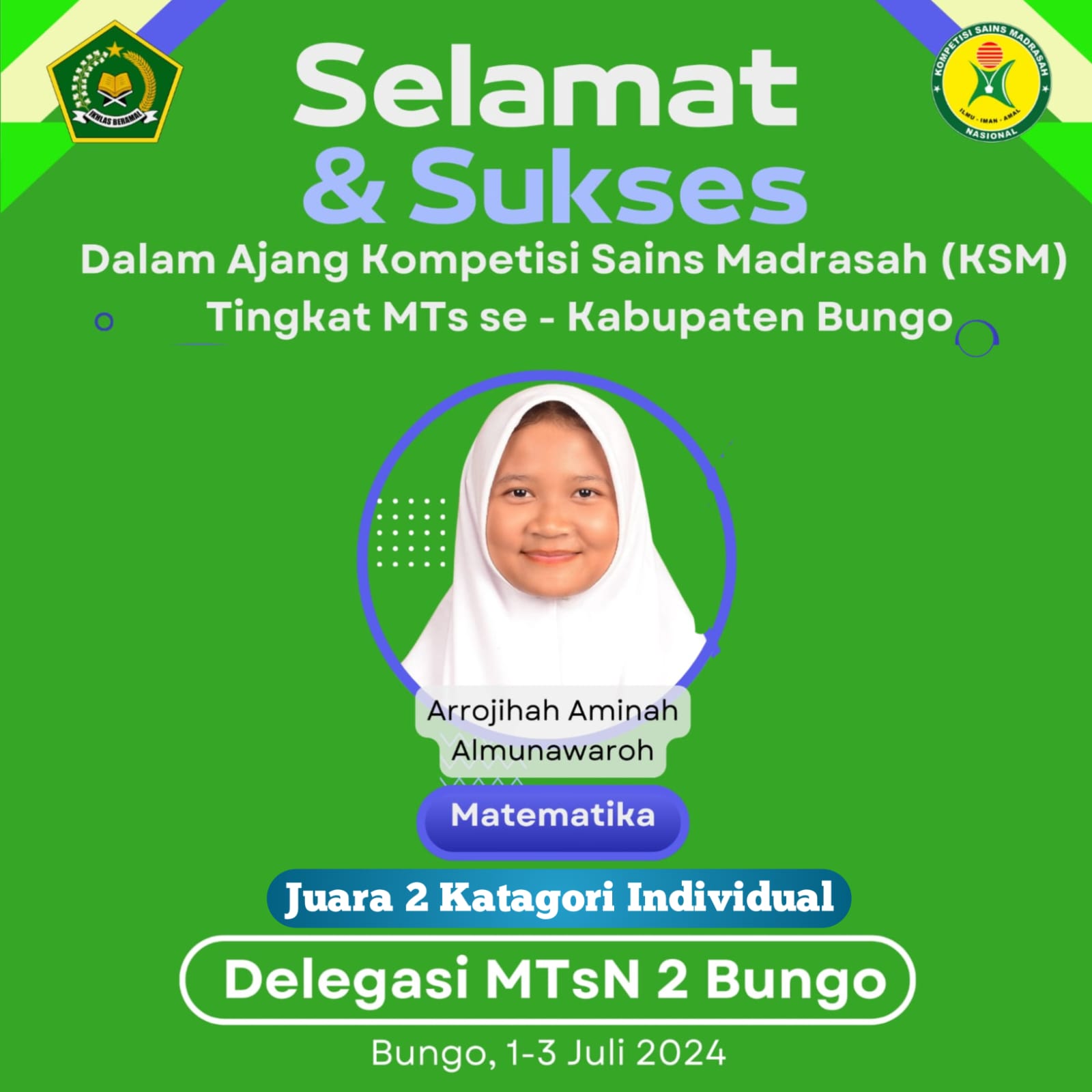 Bapak Drs. Zaharudin, selaku Kepala MTsN 2 Bungo dengan bangga mengucapkan selamat kepada anak-anak kami yang telah meraih prestasi gemilang dalam Kompetensi Sains Madrasah (KSM) tingkat kabupaten Bungo.