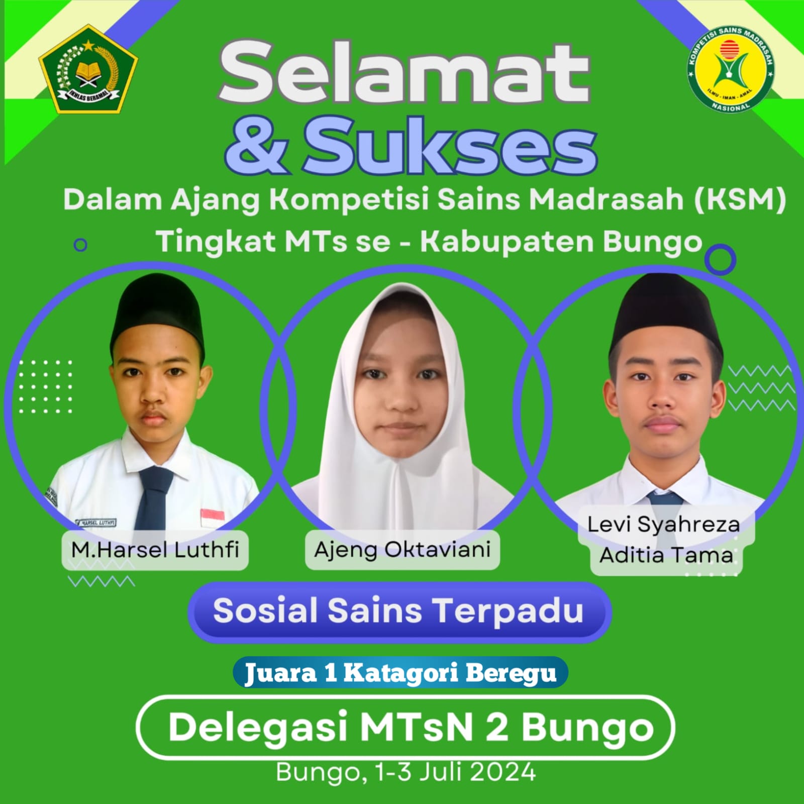 Kami berharap bahwa keberhasilan ini menjadi motivasi bagi kalian untuk terus berusaha dan mengembangkan potensi yang dimiliki. Selamat melanjutkan ke jenjang tingkat Provinsi Jambi, semoga kalian dapat mengukir prestasi yang lebih gemilang lagi untuk nama baik almamater kami, MTsN 2 Bungo.