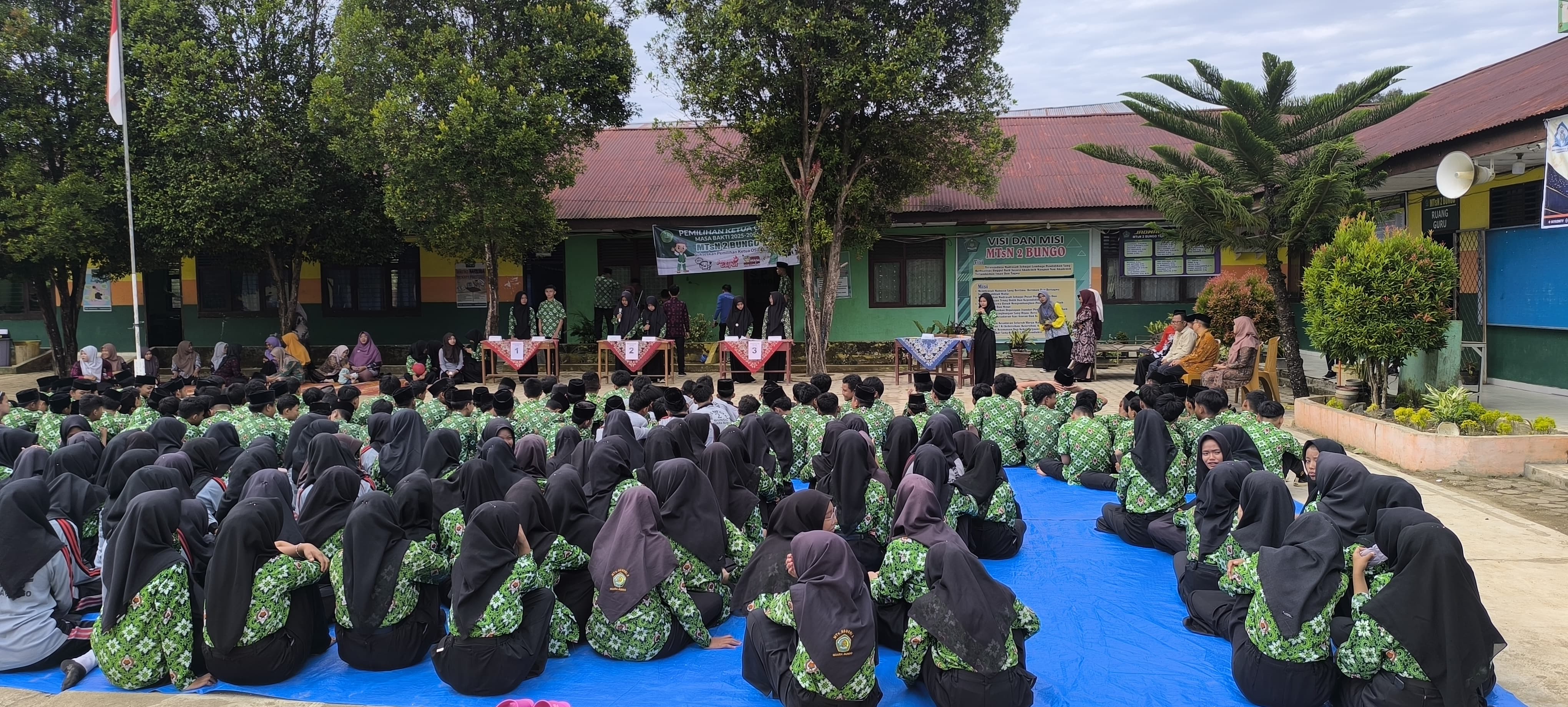 Bungo Menjelang pelaksanaan debat calon ketua dan wakil ketua OSIM, seluruh persiapan di MTsN 2 Bungo telah rampung. Panitia pemilihan OSIM yang terdiri dari guru dan siswa aktif bekerja sejak pagi untuk memastikan kegiatan berjalan lancar.
