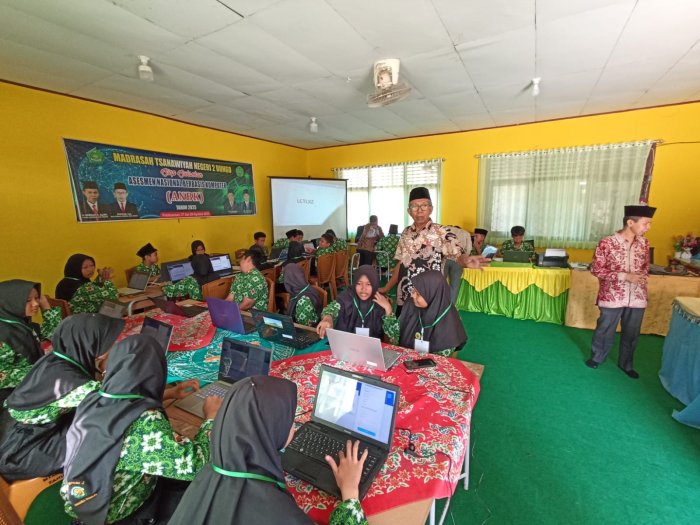 Bungo, 27 Agustus 2025 Pelaksanaan hari pertama Asesmen Nasional Berbasis Komputer (ANBK) tahun 2025 di MTsN 2 Bungo berlangsung dengan tertib dan lancar. Kegiatan asesmen digelar di ruang Multimedia madrasah dan diikuti oleh 50 siswa kelas VIII yang telah terdaftar sebagai peserta.
