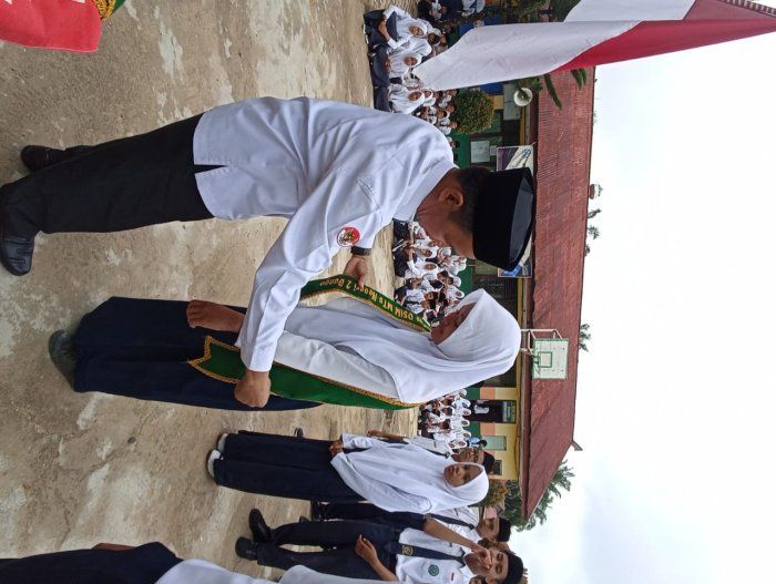 Bungo, Senin, 8 September 2025 Suasana di lapangan MTsN 2 Bungo pagi hari ini terasa istimewa dengan digelarnya pelantikan pengurus Organisasi Siswa Intra Madrasah (OSIM) periode 2025/2026. Acara ini berlangsung setelah upacara rutin yang diikuti oleh seluruh siswa dan guru madrasah.
