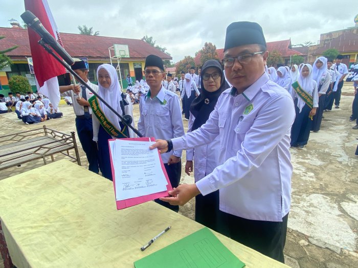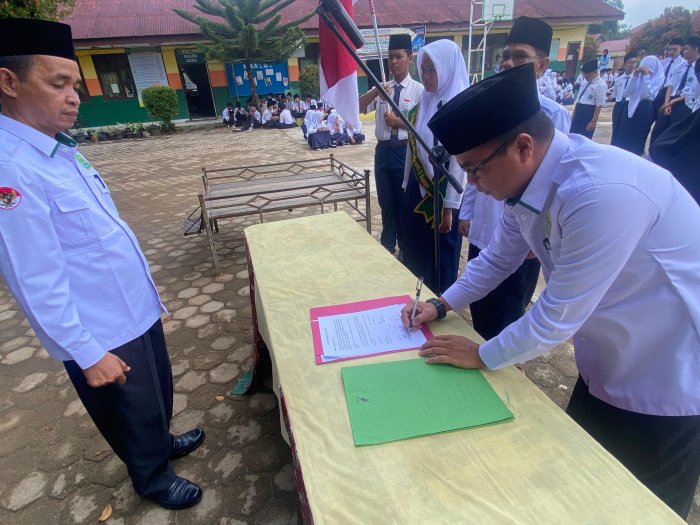 MTsN 2 Bungo menggelar serah terima jabatan dan penandatanganan kepengurusan OSIM periode 2025/2026 pada Senin, 8 September 2025. Kegiatan ini berlangsung di lapangan madrasah dan dihadiri oleh seluruh siswa, dewan guru, serta staf madrasah. Prosesi tersebut menjadi momen penting dalam regenerasi kepemimpinan di lingkungan madrasah.