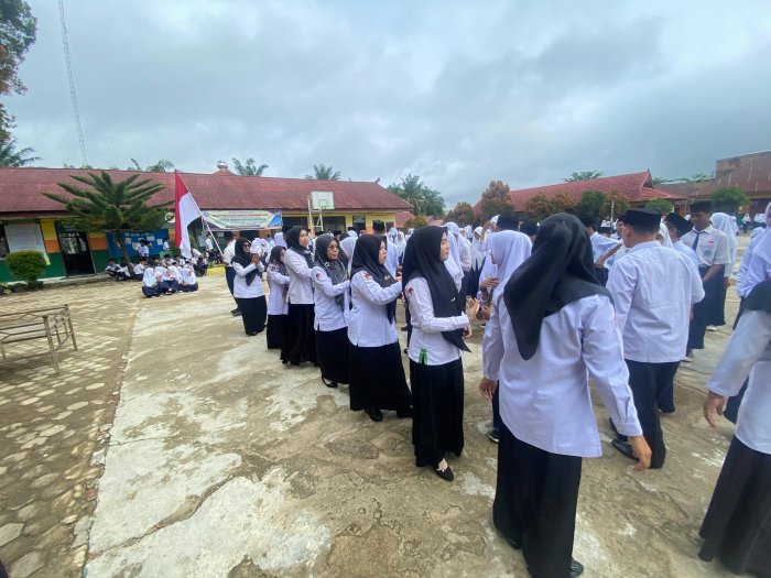 Bungo, Senin, 8 September 2025 – MTsN 2 Bungo menggelar acara pelantikan pengurus Organisasi Siswa Intra Madrasah (OSIM) yang baru pada pagi hari ini. Suasana di lingkungan madrasah tampak hangat dan penuh kebanggaan, terutama setelah seluruh majelis guru memberikan ucapan selamat secara langsung kepada para anggota OSIM yang baru dilantik.