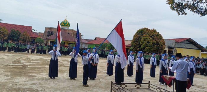 MTsN 2 Bungo pelantikan anggota baru Palang Merah Remaja (PMR) pada Rabu, 17 September 2025. Acara ini berlangsung di lapangan madrasah mulai pukul 10.30 WIB dan dihadiri oleh seluruh siswa serta majelis guru. Suasana upacara terasa khidmat dan penuh semangat sejak awal hingga akhir.