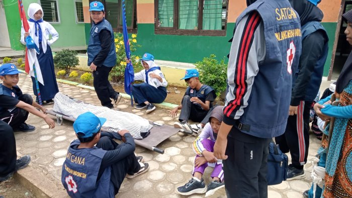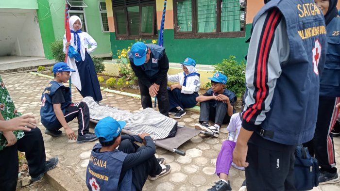 Simulasi dimulai pukul 11.30 WIB dengan bunyi sirine sebagai tanda peringatan. Siswa segera melakukan prosedur perlindungan diri, yaitu berlindung di bawah meja (drop, cover, and hold), sebelum diarahkan menuju titik kumpul yang telah ditentukan di lapangan. Anggota PMR memperagakan proses evakuasi korban, penanganan pertolongan pertama, serta tata cara komunikasi dalam situasi darurat.