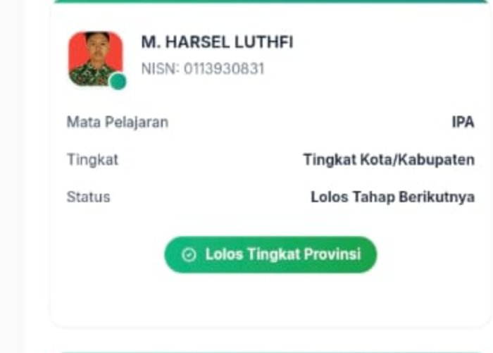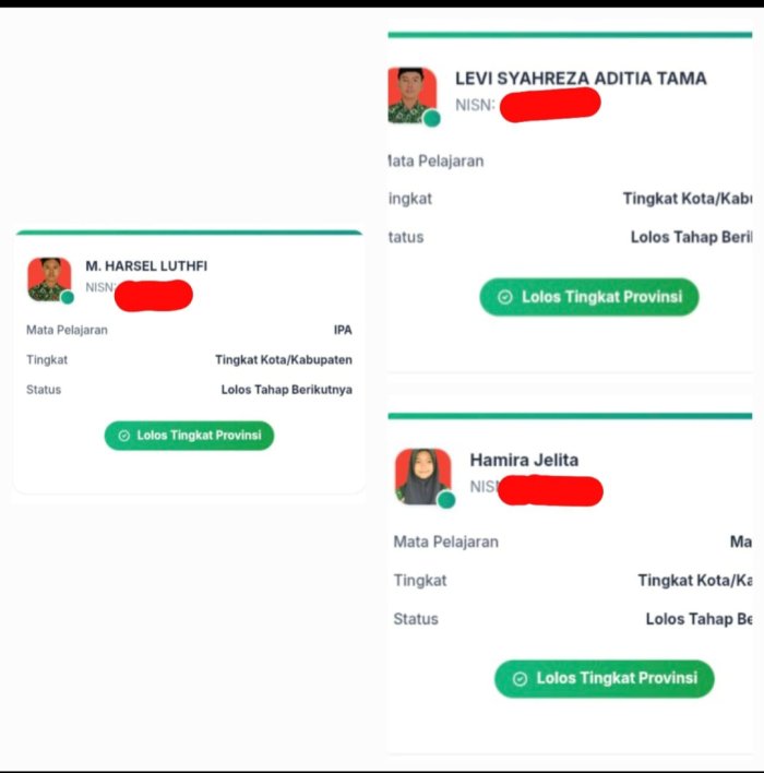 Tiga siswa dari MTsN 2 Bungo berhasil meraih prestasi dengan lolos dalam Olimpiade Madrasah Indonesia (OMI) tingkat Kabupaten Bungo. Keberhasilan ini diumumkan pada Rabu, 18 September 2025. Ketiga siswa tersebut kini tengah mempersiapkan diri untuk menghadapi persaingan di tingkat Provinsi, setelah melewati seleksi ketat di tingkat kabupaten.