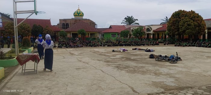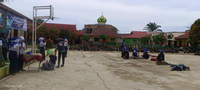 Bungo, 16 September 2025 Suasana di halaman MTsN 2 Bungo berubah menjadi penuh antusiasme ketika sejumlah anggota Palang Merah Remaja (PMR) madrasah tersebut menggelar simulasi penyelamatan korban kecelakaan. Kegiatan ini berlangsung dramatis dan berhasil menarik perhatian para guru, siswa, serta staf madrasah yang hadir di lokasi.