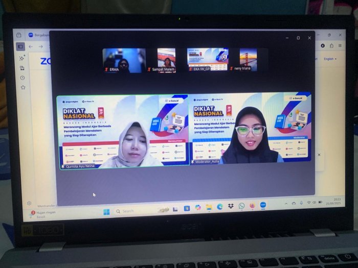 Bungo, 25 September 2025 — Ibu Erma, S.Pd., guru Bahasa Indonesia di MTsN 2 Bungo, menunjukkan semangat tinggi dalam mengikuti Diklat Nasional yang berlangsung secara daring pada 24–27 September 2025. Kegiatan ini mengangkat tema "Merancang Modul Ajar Berbasis Pembelajaran Mendalam yang Siap Diterapkan" dan diikuti oleh pendidik dari berbagai daerah di Indonesia.