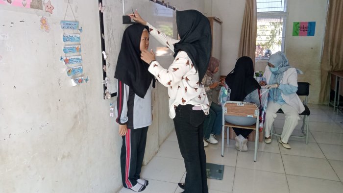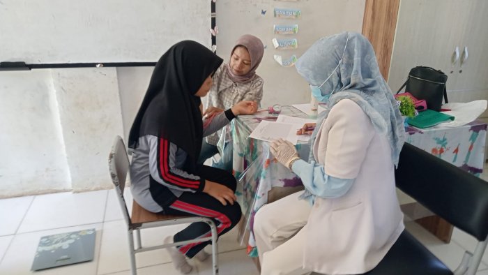 Selain itu, pemeriksaan khusus seperti tes gula darah juga diberikan untuk siswa MTsN 2 Bungo, sebagai bagian dari deteksi dini penyakit metabolik.