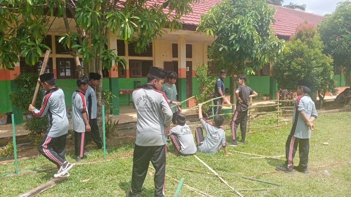 Pembangunan pagar dilakukan pada hari Sabtu sebagai bagian dari kegiatan class project. Para siswa membawa bahan-bahan seperti kayu bekas, bambu, dan paku dari rumah masing-masing. Dengan penuh semangat, mereka bekerja sama mengukur, memotong, dan memasang pagar secara bergantian. Proses ini juga menjadi ajang pembelajaran keterampilan prakarya secara langsung.