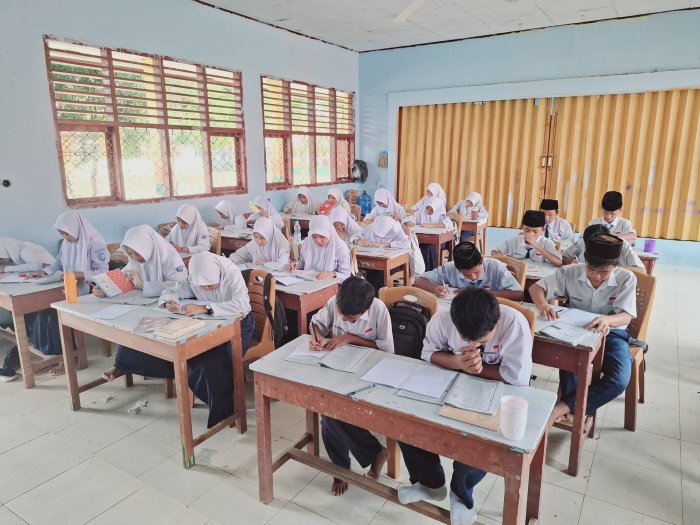 Peserta didik tampak fokus menjawab soal-soal yang diberikan oleh guru pengampu. Melalui ulangan ini, guru berharap dapat mengevaluasi sejauh mana pemahaman siswa serta menentukan langkah tindak lanjut untuk meningkatkan hasil belajar pada materi berikutnya.