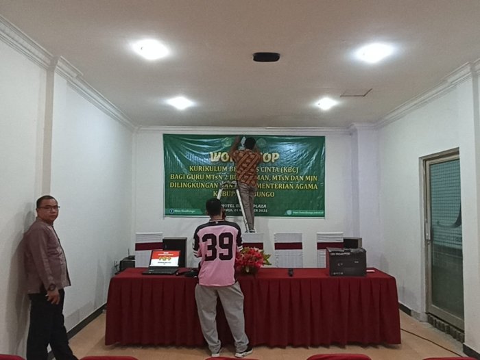 Menjelang pelaksanaan Workshop Kurikulum Berbasis Cinta (KBC) yang dijadwalkan pada Sabtu, 1 November 2025, panitia dari MTsN 2 Bungo bersama tim dari Kantor Kementerian Agama Kabupaten Bungo melakukan pengecekan lokasi di Hotel Bungo Plaza. Kegiatan pengecekan ini berlangsung pada Jumat, 31 Oktober 2025, sebagai bagian dari persiapan akhir sebelum acara dimulai.