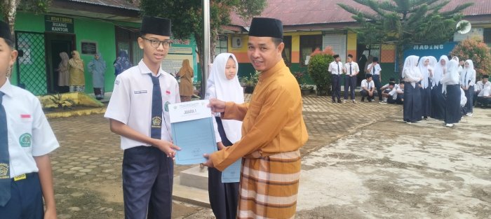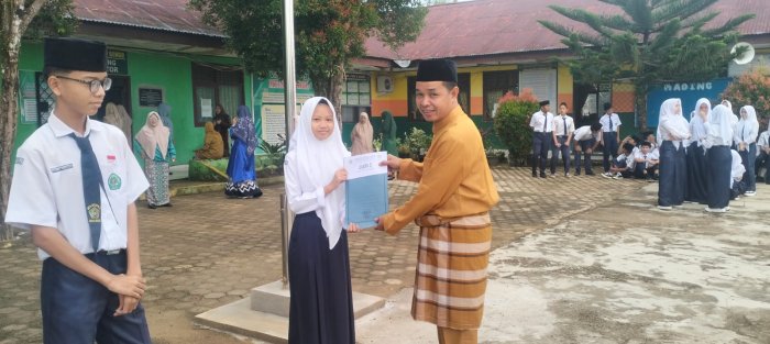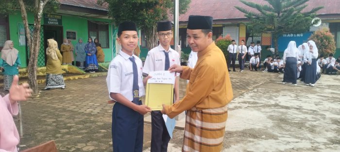 Dalam rangka memperingati Hari Amal Bakti (HAB) Kementerian Agama Republik Indonesia ke-80, MTsN 2 Bungo menorehkan prestasi membanggakan melalui keberhasilan siswa-siswinya dalam ajang lomba Tahfidz Al-Qur’an dan Adzan. Sebagai bentuk apresiasi, Kepala MTsN 2 Bungo menyerahkan piagam penghargaan kepada para siswa yang berhasil meraih juara.