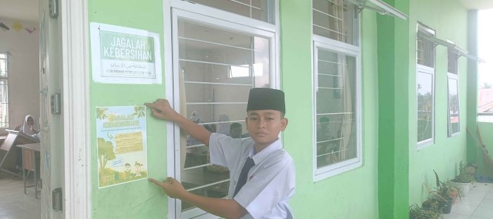 Poster yang dipasang berisi pesan edukatif tentang ajakan menjaga kebersihan sebagai bagian dari nilai karakter dan keimanan. Dengan pemasangan poster tersebut, siswa berharap dapat mengingatkan seluruh warga kelas agar senantiasa menjaga kebersihan ruang belajar dan lingkungan sekitar.