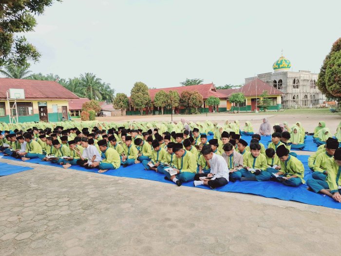 Jum’at, 23 Januari 2026, keluarga besar MTsN 2 Bungo melaksanakan kegiatan yasinan bersama di lapangan madrasah sebagai pembuka sebelum dimulainya acara peringatan Isra Mi’raj Nabi Muhammad SAW.