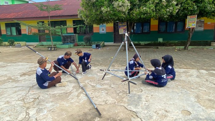 "Tujuannya bukan cuma sekadar mendirikan tiang, tapi bagaimana mereka bisa berbagi tugas. Ada yang memegang tongkat, ada yang menarik tali, dan ada yang memastikan sudutnya presisi," ujar Pembina Pramuka MTsN 2 Bungo di sela-sela kegiatan.